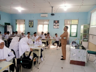 Kegiatan Promosi Sekolah, Guru SMK Negeri 4 Banda Aceh sedang memberikan pengarahan kepada siswa smp kelas ...